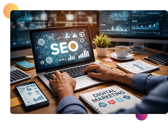 A strong online presence requires more than just a website. Our SEO and digital marketing strategies help your business rank higher, attract the right audience, and generate qualified leads.